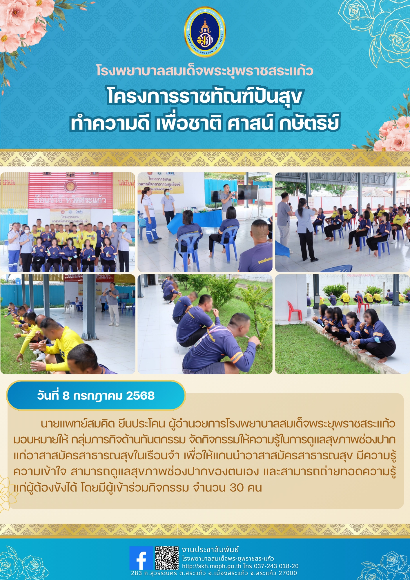 สุภาพร ภูจิตทอง ประชาสัมพันธ์กิจกรรมบริการ 19 August 2025 Hits: 6 โครงการราชทัณฑ์ปันสุข ทำความดี เพื่อชาติ ศาสน์ กษัตริย์ Print Email Prev Next