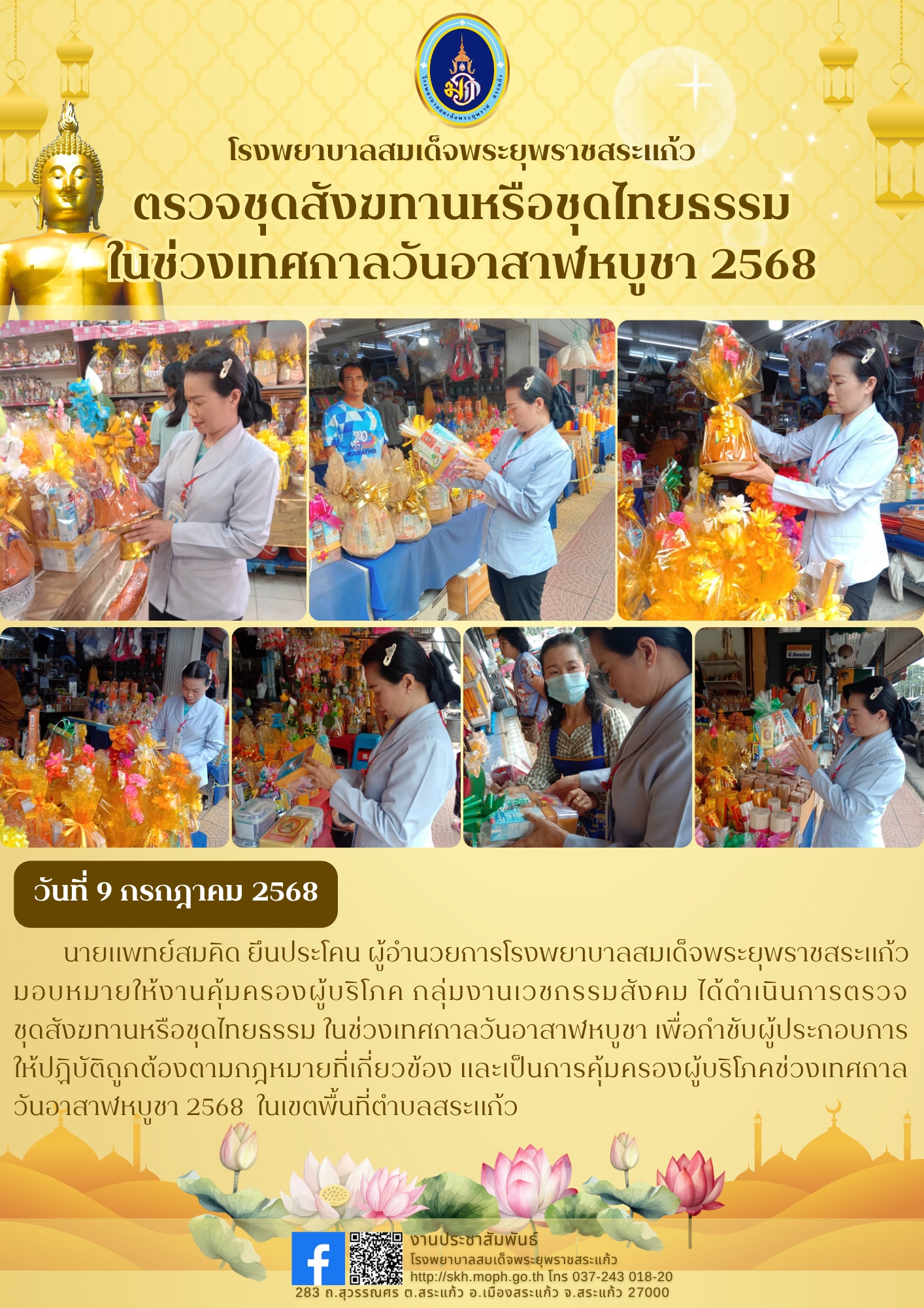 สุภาพร ภูจิตทอง ประชาสัมพันธ์กิจกรรมบริการ 20 August 2025 Hits: 6 ตรวจชุดสังฆทานหรือชุดไทยธรรม ในช่วงเทศกาลวันอาสาฬหบูชา 2568 Print Email Prev Next