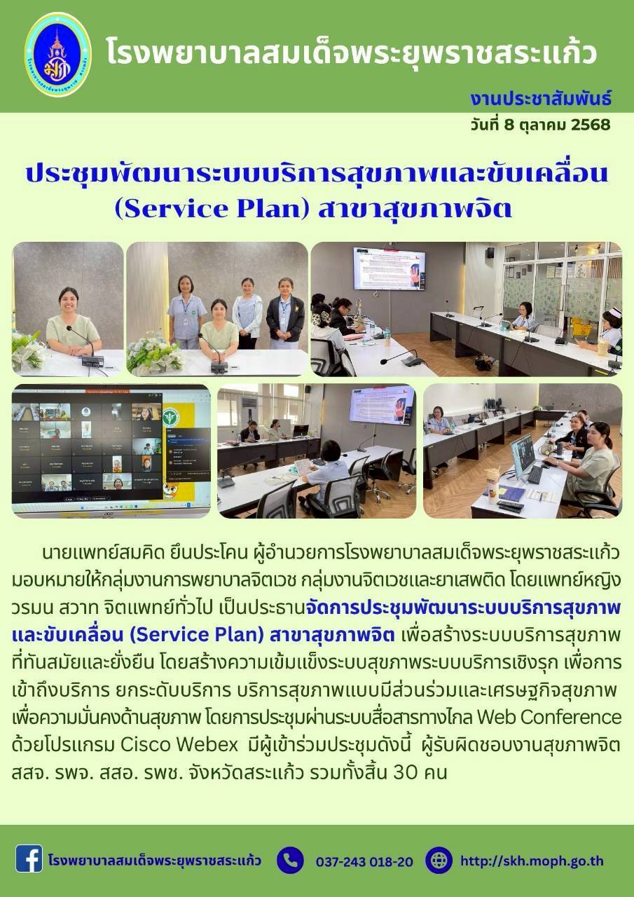 สุภาพร ภูจิตทอง ประชาสัมพันธ์กิจกรรมบริการ 14 October 2025 Hits: 8 ประชุมพัฒนาระบบบริการสุขภาพและขับเคลื่อน (Service Plan) สาขาสุขภาพจิต Print Email Prev Next
