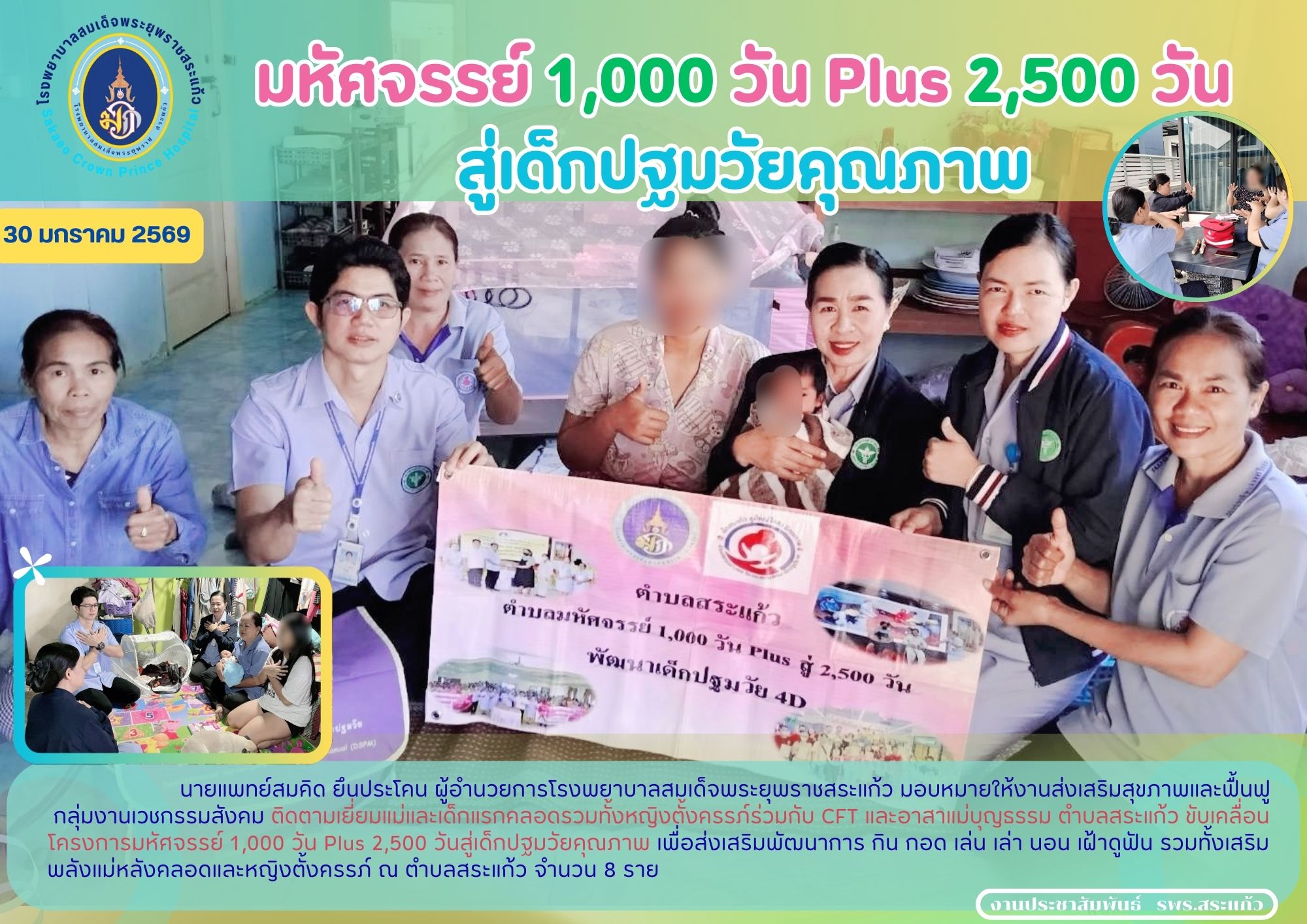 สุภาพร ภูจิตทอง ประชาสัมพันธ์กิจกรรมบริการ 30 January 2026 Hits: 1470 มหัศจรรย์ 1,000 วัน Plus 2,500 วันสู่เด็กปฐมวัยคุณภาพ Print Email Prev Next