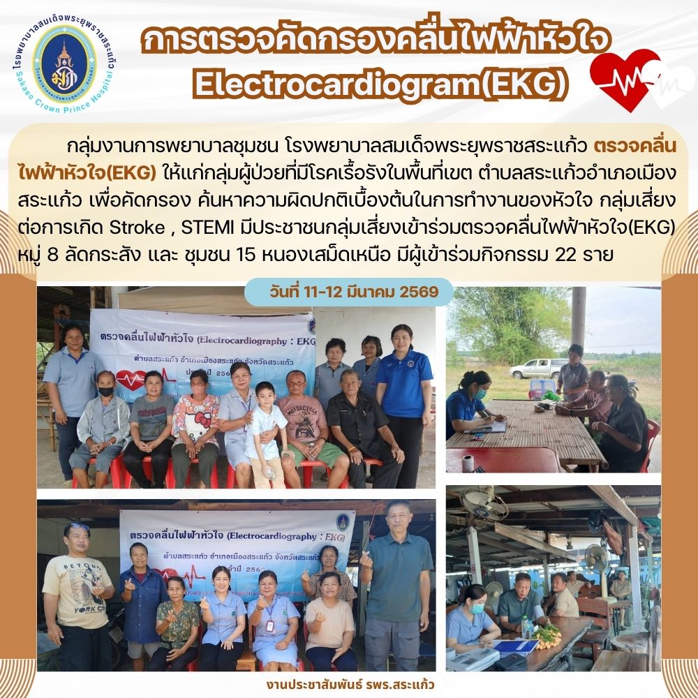 สุภาพร ภูจิตทอง ประชาสัมพันธ์กิจกรรมบริการ 12 March 2026 Hits: 8 การตรวจคัดกรองคลื่นไฟฟ้าหัวใจ Electrocardiogram (EKG) ในพื้นที่เขตอำเภอเมืองสระแก้ว Print Email Prev Next