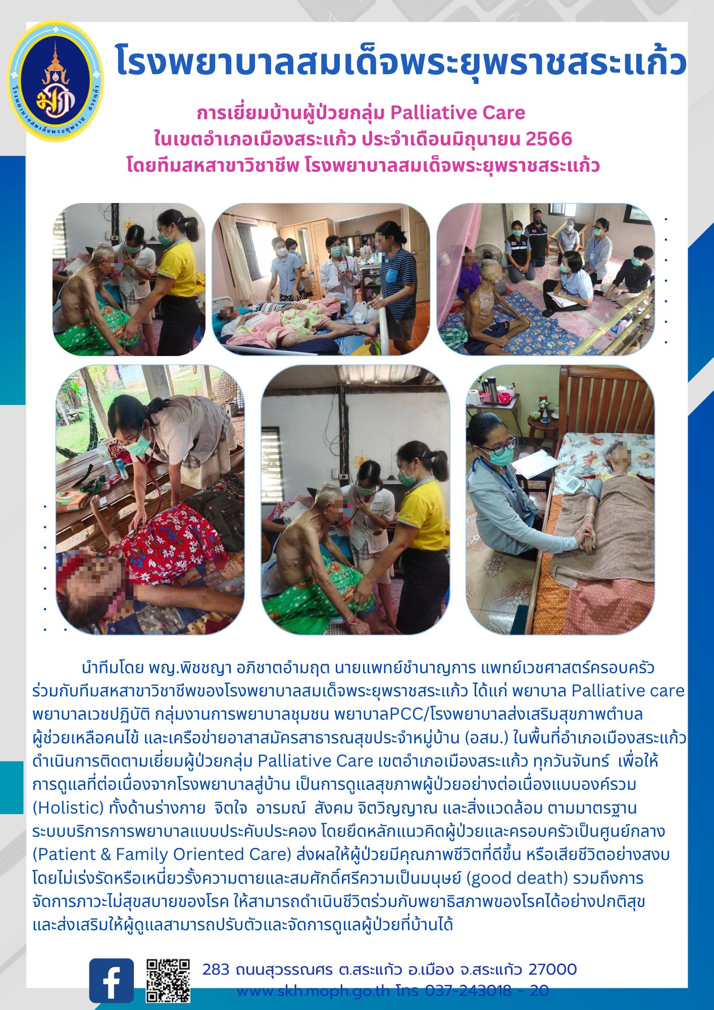 สุภาพร ภูจิตทอง ประชาสัมพันธ์กิจกรรมบริการ 29 June 2023 Hits: 59 การเยี่ยมบ้านผู้ป่วยกลุ่ม Palliative Care ในเขตอำเภอเมืองสระแก้ว ประจำเดือนมิถุนายน 2566 โดยทีมสหสาขาวิชาชีพ โรงพยาบาลสมเด็จพระยุพราชสระแก้ว Print Email