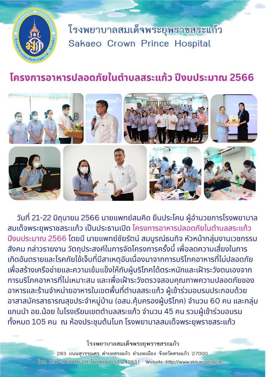 สุภาพร ภูจิตทอง ประชาสัมพันธ์กิจกรรมบริการ 29 June 2023 Hits: 24 โครงการอาหารปลอดภัยในตำบลสระแก้ว ปีงบประมาณ 2566 Print Email