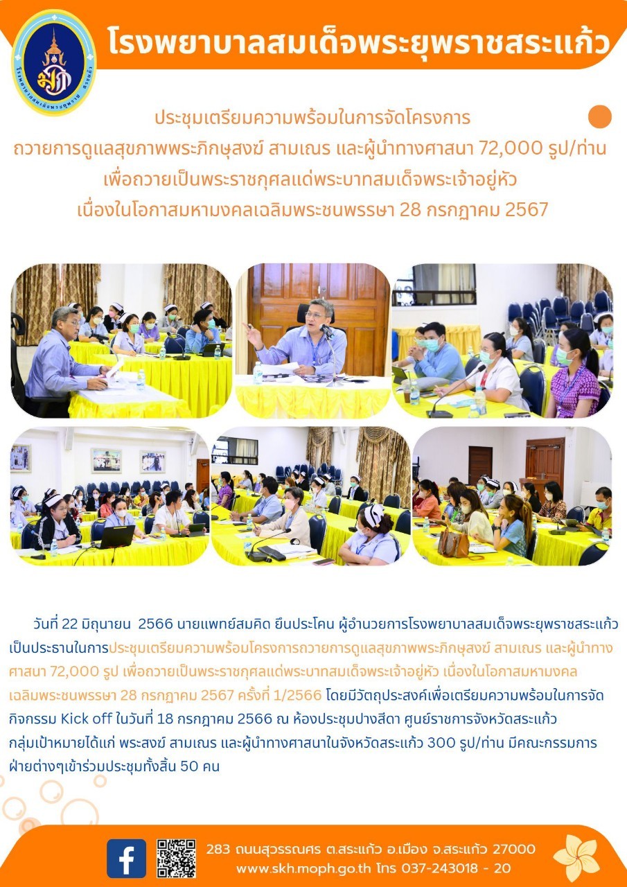 สุภาพร ภูจิตทอง ประชาสัมพันธ์กิจกรรมบริการ 29 June 2023 Hits: 19 ประชุมเตรียมความพร้อมในการจัดโครงการถวายการดูแลสุขภาพพระภิกษุสงฆ์ สามเณร และผู้นำทางศาสนา ๗๒,๐๐๐ รูป/ท่าน เพื่อถวายเป็นพระราชกุศลแด่พระบาทสมเด็จพระเจ้าอยู่หัว เนื่องในโอกาสมหามงคลเฉลิมพระชนพรรษา ๒๘ กรกฏาคม ๒๕๖๗ Print Email