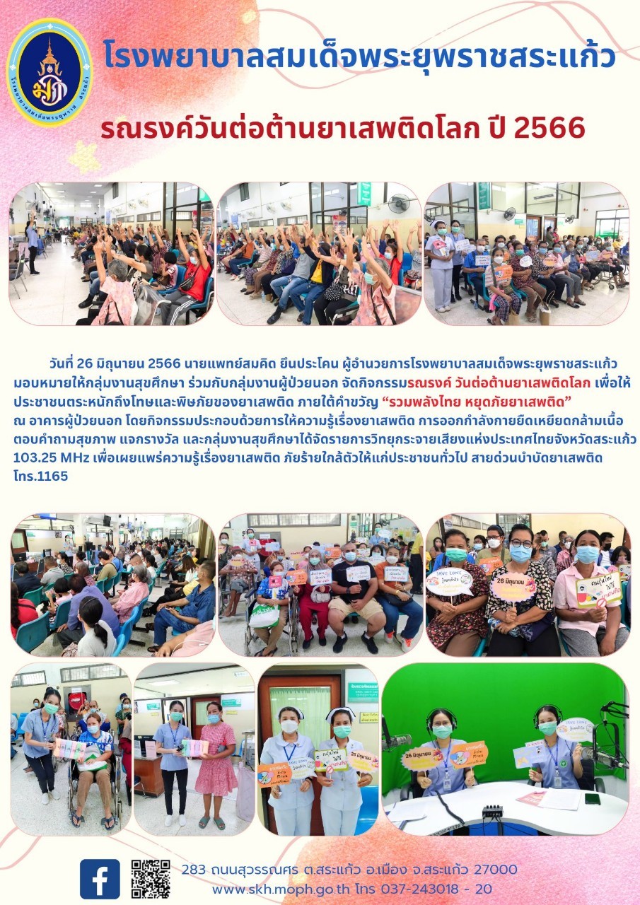 สุภาพร ภูจิตทอง ประชาสัมพันธ์กิจกรรมบริการ 29 June 2023 Hits: 29 รณรงค์วันต่อต้านยาเสพติดโลก ปี 2566 Print Email