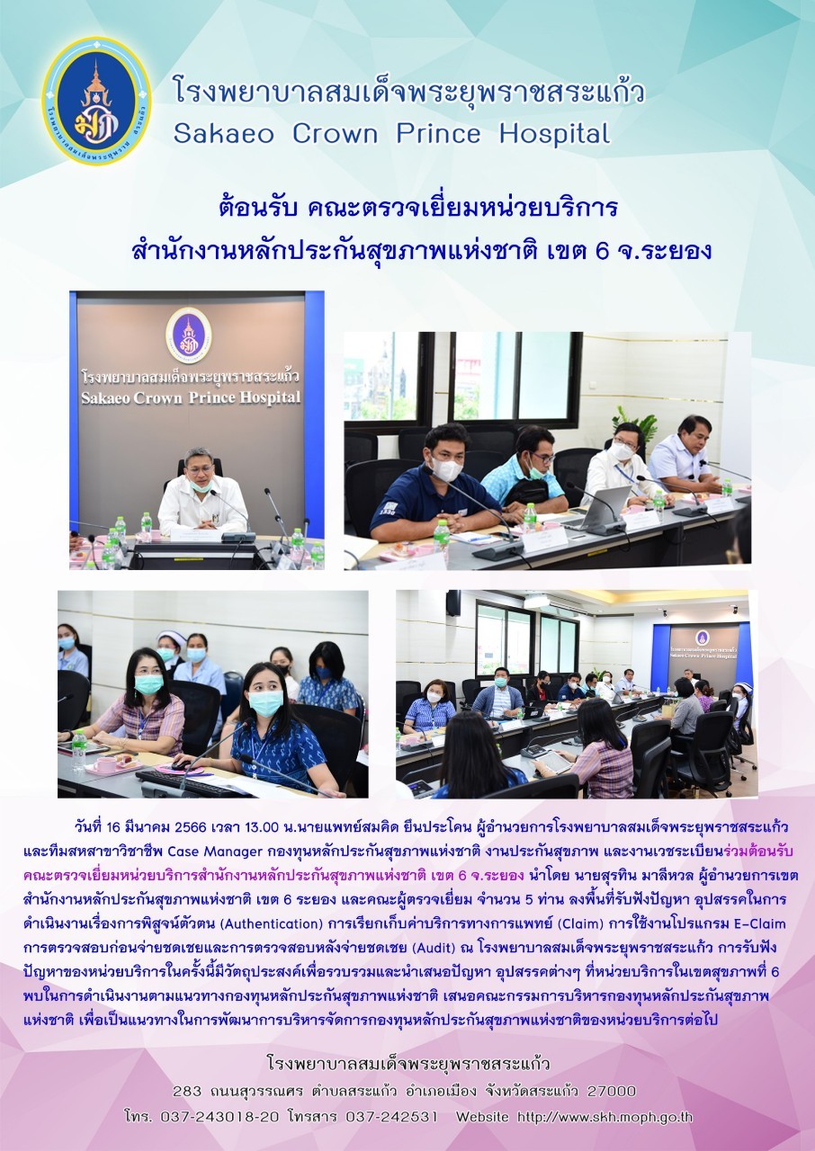 สุภาพร ภูจิตทอง ประชาสัมพันธ์กิจกรรมบริการ 20 March 2023 Hits: 23 ร่วมต้อนรับ คณะตรวจเยี่ยมหน่วยบริการ สำนักงานหลักประกันสุขภาพแห่งชาติ เขต 6 ระยอง Print Email