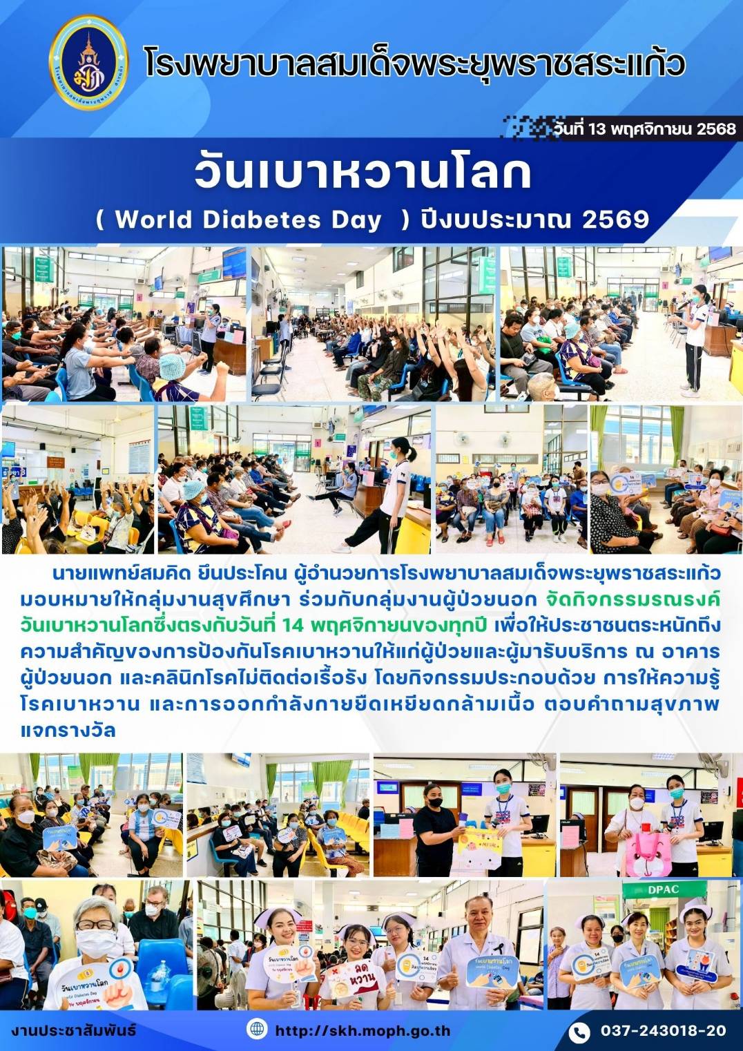 สุภาพร ภูจิตทอง ประชาสัมพันธ์กิจกรรมบริการ 14 November 2025 Hits: 5 วันเบาหวานโลก ( World Diabetes Day ) ปีงบประมาณ 2569 Print Email