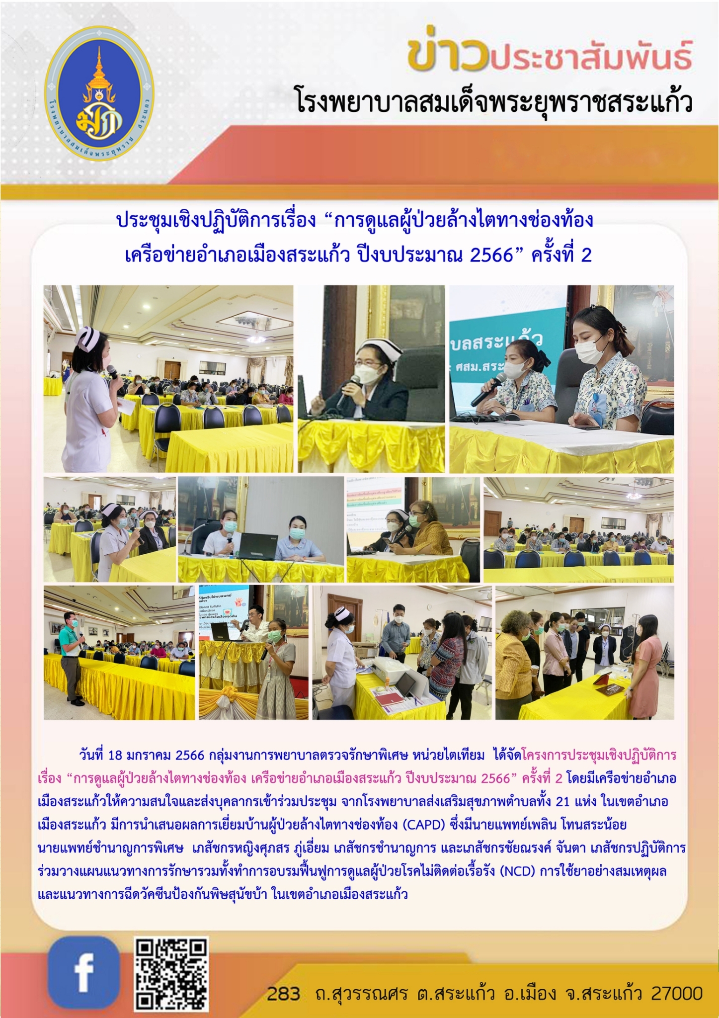 สุภาพร ภูจิตทอง ประชาสัมพันธ์กิจกรรมบริการ 03 February 2023 Hits: 30 ประชุมวิชาการเชิงปฏิบัติการเรื่อง “การดูแลผู้ป่วยล้างไตทางช่องท้อง เครือข่ายอำเภอเมืองสระแก้ว ปีงบประมาณ 2566 ครั้งที่ 2 Print Email