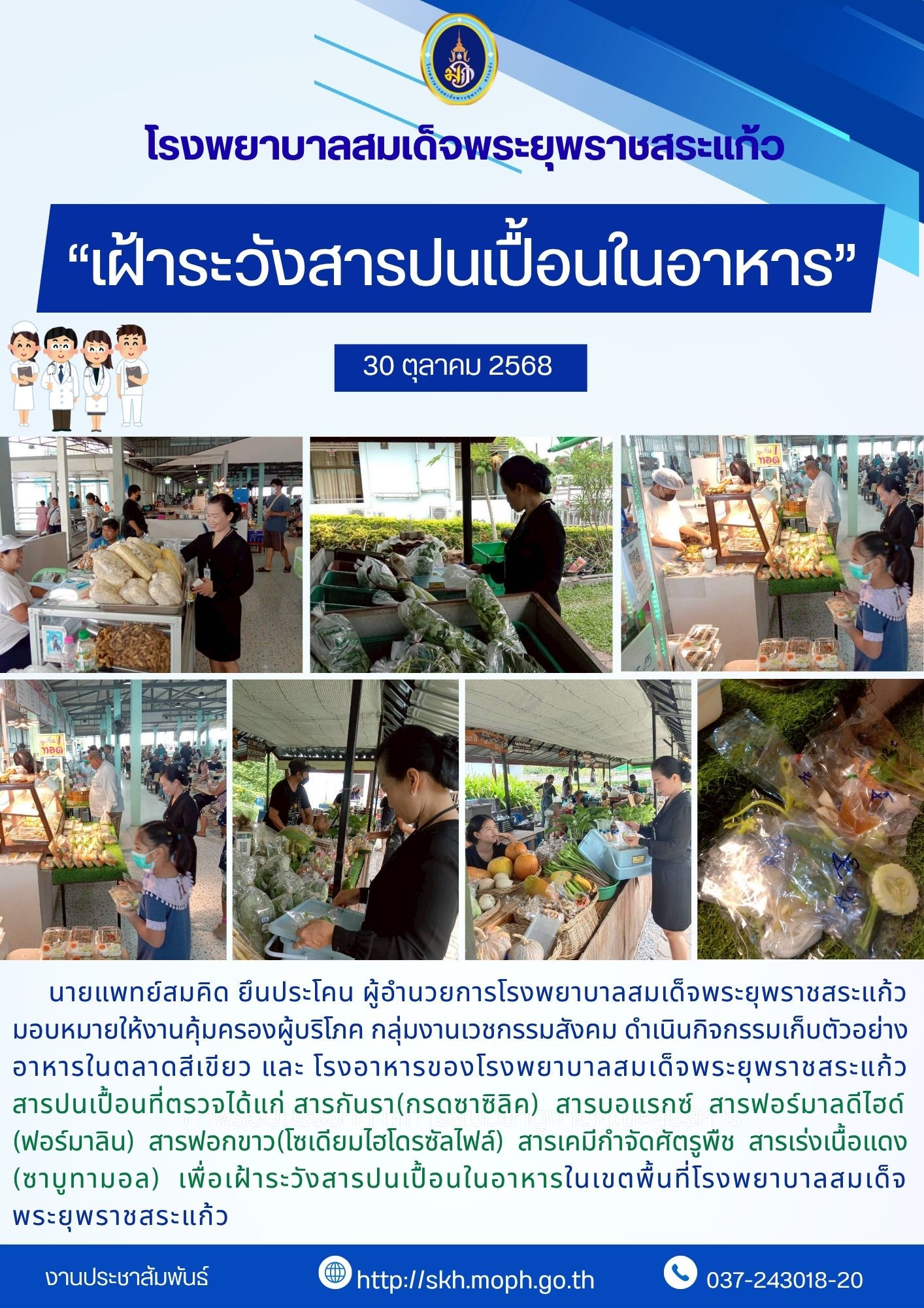สุภาพร ภูจิตทอง ประชาสัมพันธ์กิจกรรมบริการ 03 November 2025 Hits: 6 เฝ้าระวังสารปนเปื้อนในอาหาร Print Email