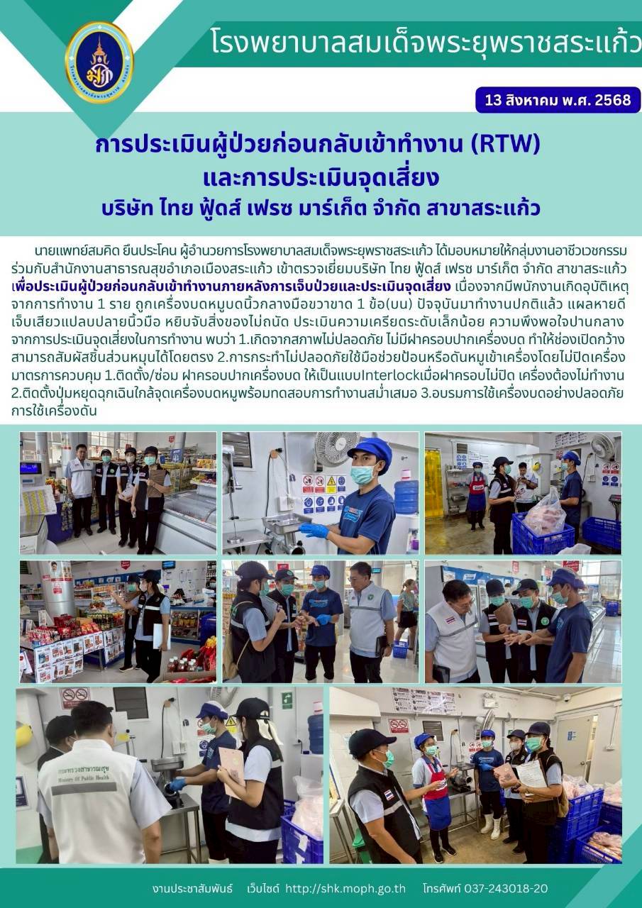 สุภาพร ภูจิตทอง ประชาสัมพันธ์กิจกรรมบริการ 25 September 2025 Hits: 4 การประเมินผู้ป่วยก่อนกลับเข้าทำงาน (RTW) และการประเมินจุดเสี่ยง Print Email