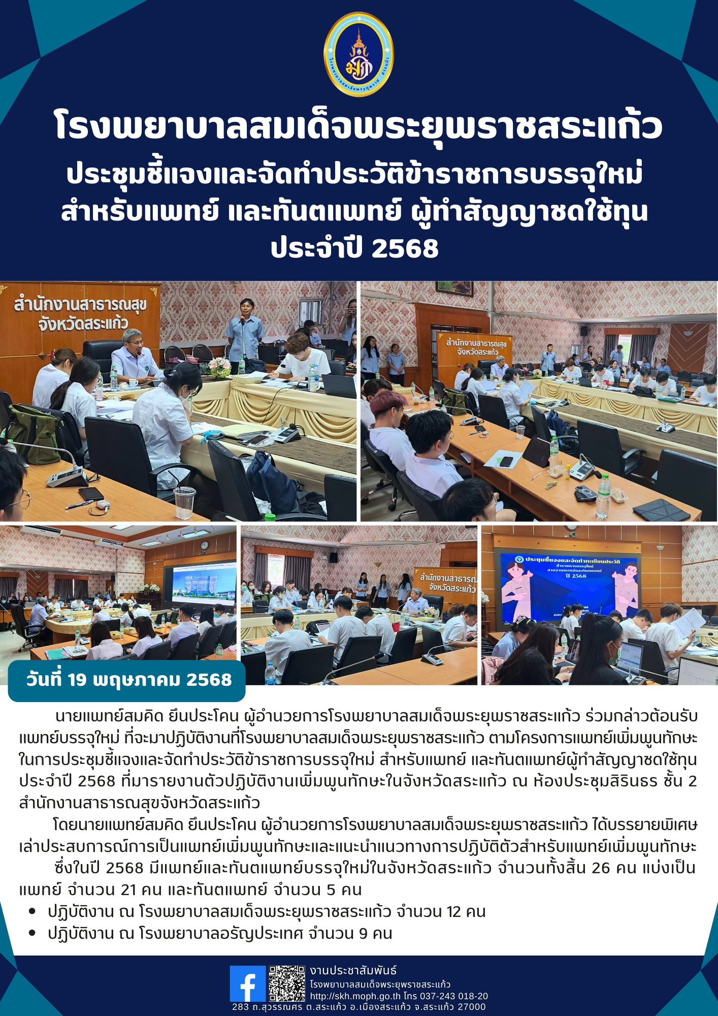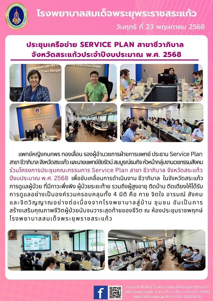 สุภาพร ภูจิตทอง ประชาสัมพันธ์กิจกรรมบริการ 20 July 2025 Hits: 9 ประชุมเครือข่าย Service Plan สาขาชีวาภิบาล จังหวัดสระแก้ว ประจำปีงบประมาณ 2568 Print Email