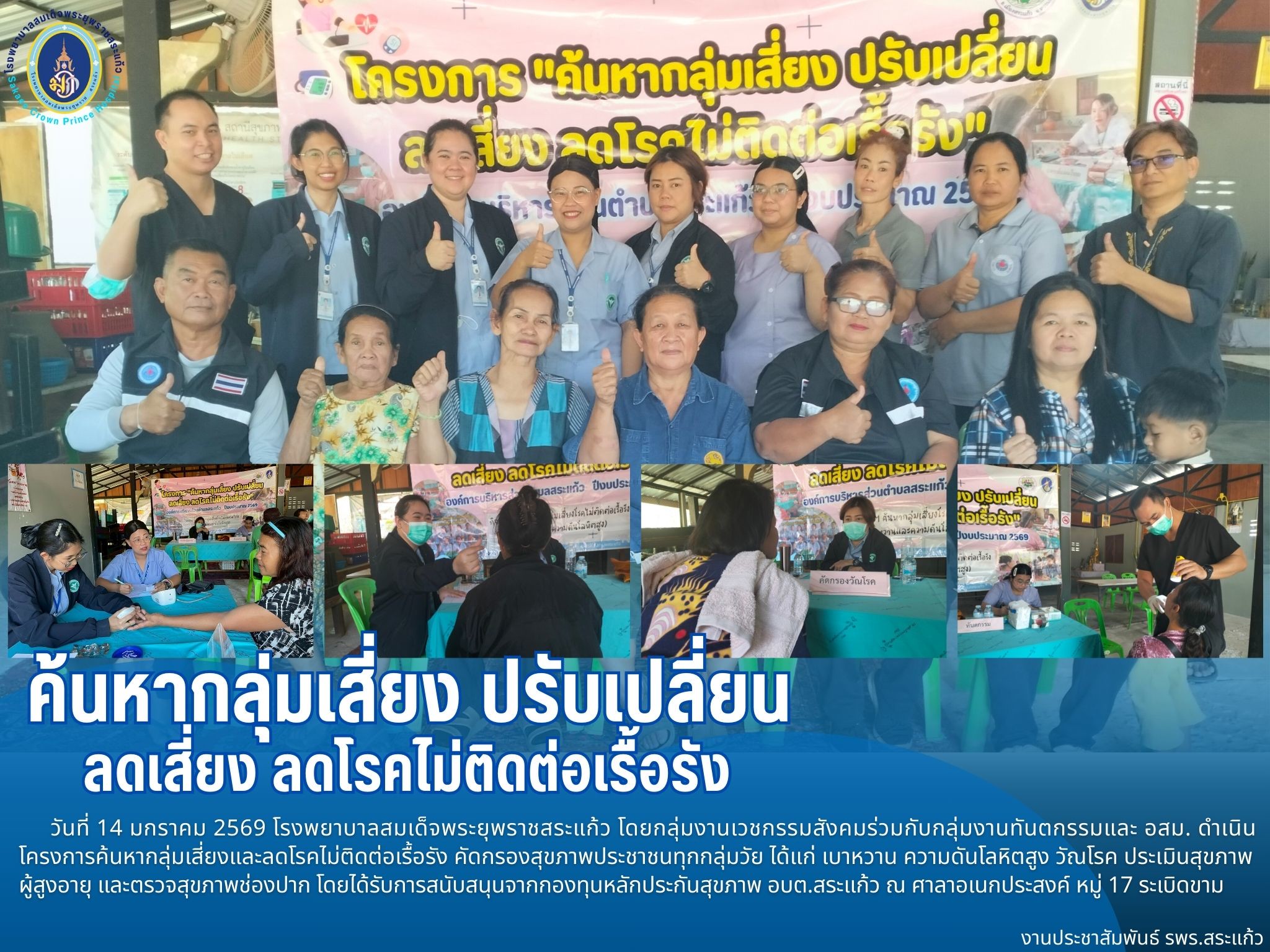 สุภาพร ภูจิตทอง ประชาสัมพันธ์กิจกรรมบริการ 14 January 2026 Hits: 810 ค้นหากลุ่มเสี่ยง ปรับเปลี่ยน ลดเสี่ยง ลดโรคไม่ติดต่อเรื้อรัง Print Email