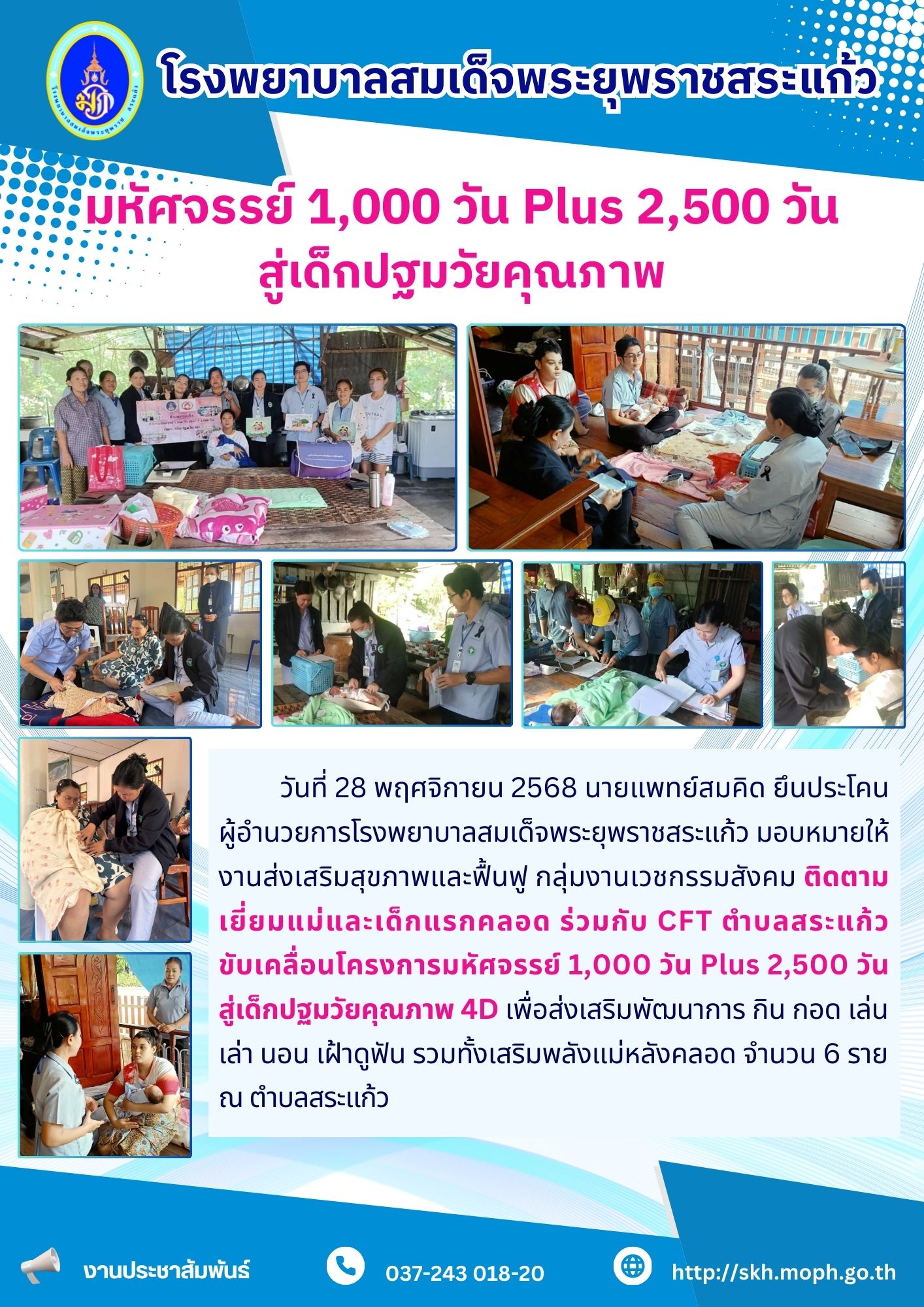 สุภาพร ภูจิตทอง ประชาสัมพันธ์กิจกรรมบริการ 28 November 2025 Hits: 251 ขับเคลื่อนโครงการมหัศจรรย์ 1,000 วัน Plus 2,500 วัน สู่เด็กปฐมวัยคุณภาพ 4D Print Email
