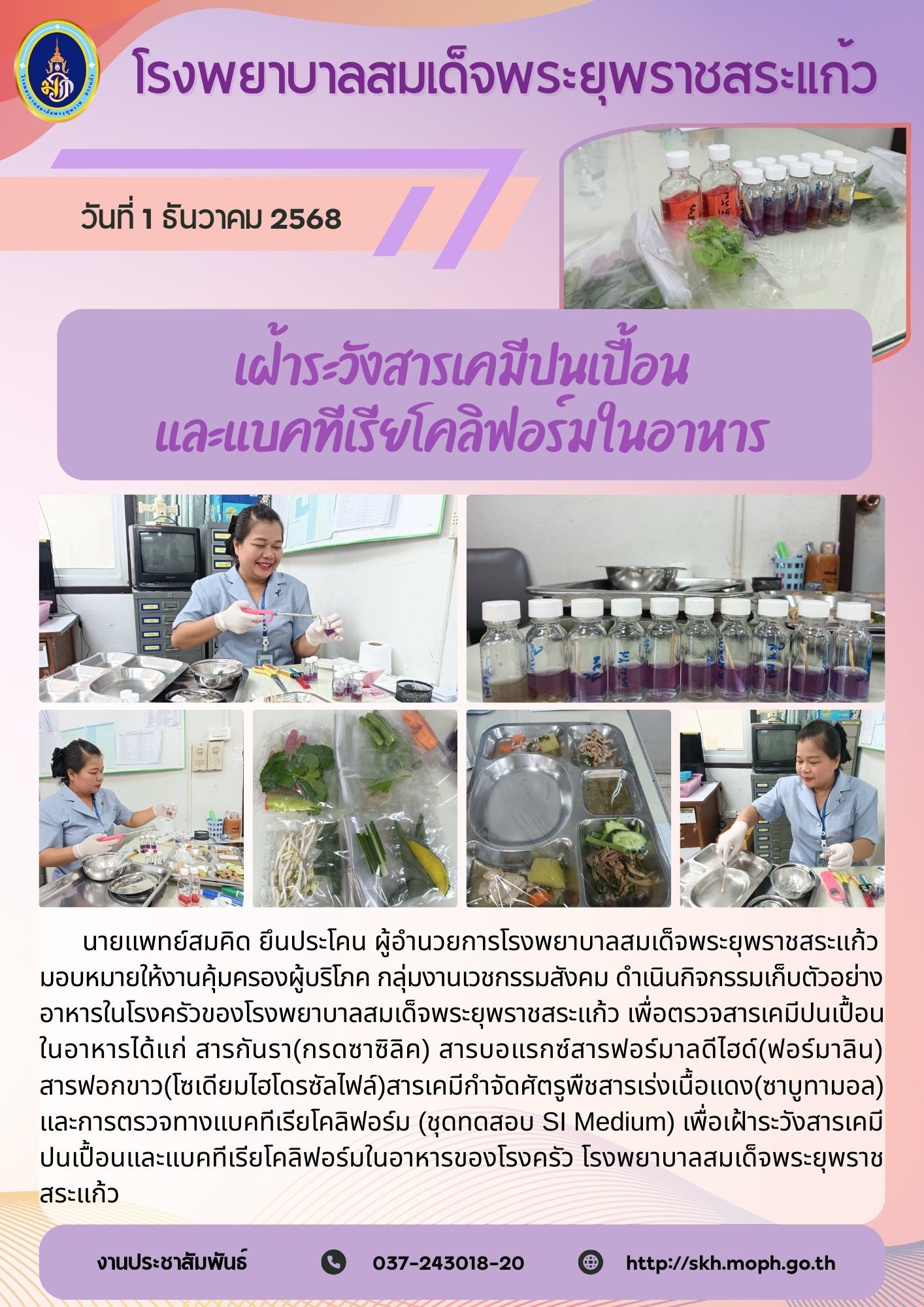 สุภาพร ภูจิตทอง ประชาสัมพันธ์กิจกรรมบริการ 02 December 2025 Hits: 1226 เฝ้าระวังสารเคมีปนเปื้อนและแบคทีเรียโคลิฟอร์มในอาหาร Print Email