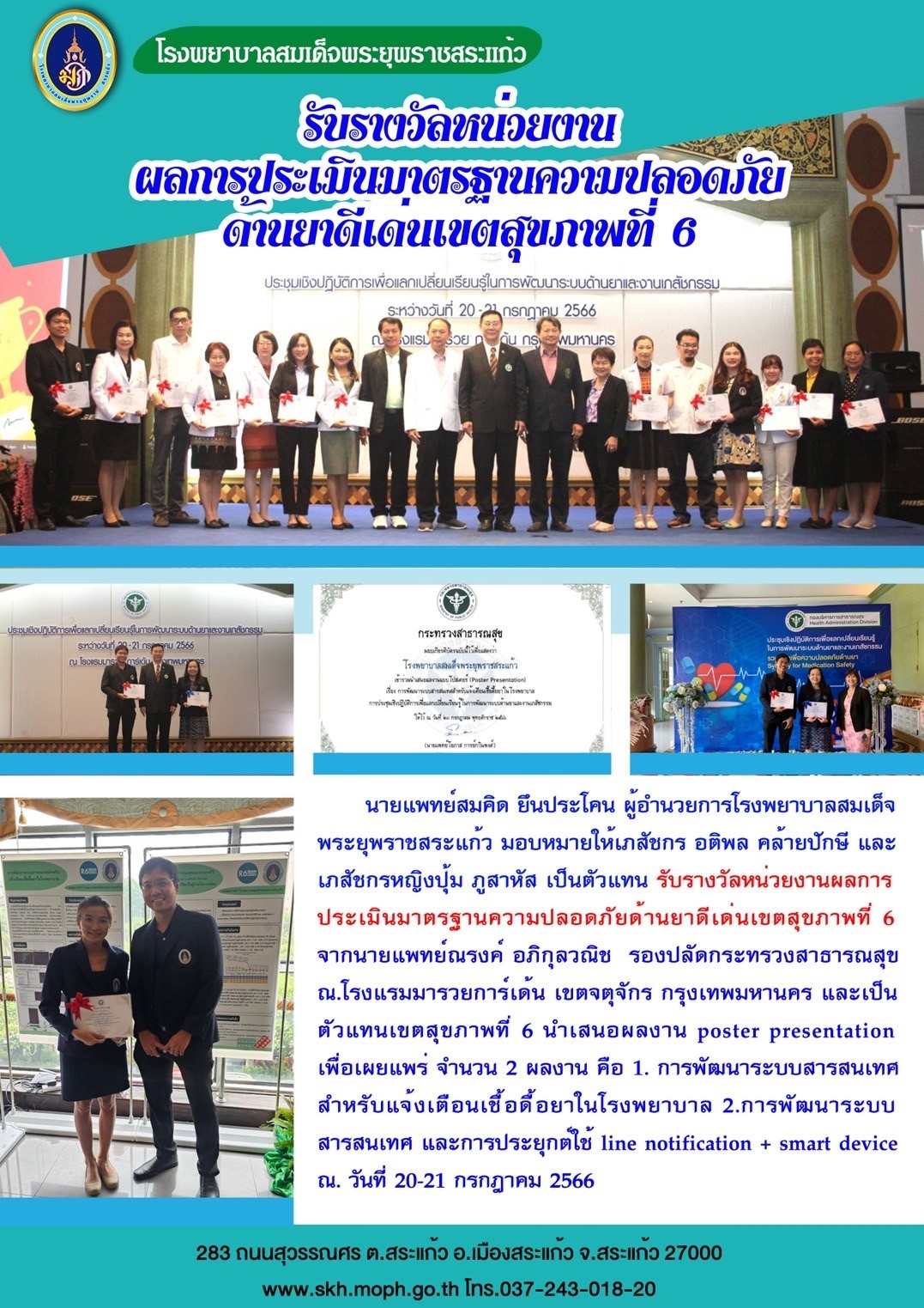 สุภาพร ภูจิตทอง ประชาสัมพันธ์กิจกรรมบริการ 18 August 2023 Hits: 16 รับรางวัลหน่วยงานผลการประเมินมาตรฐานความปลอดภัยด้านยาดีเด่นเขตสุขภาพที่ 6 Print Email