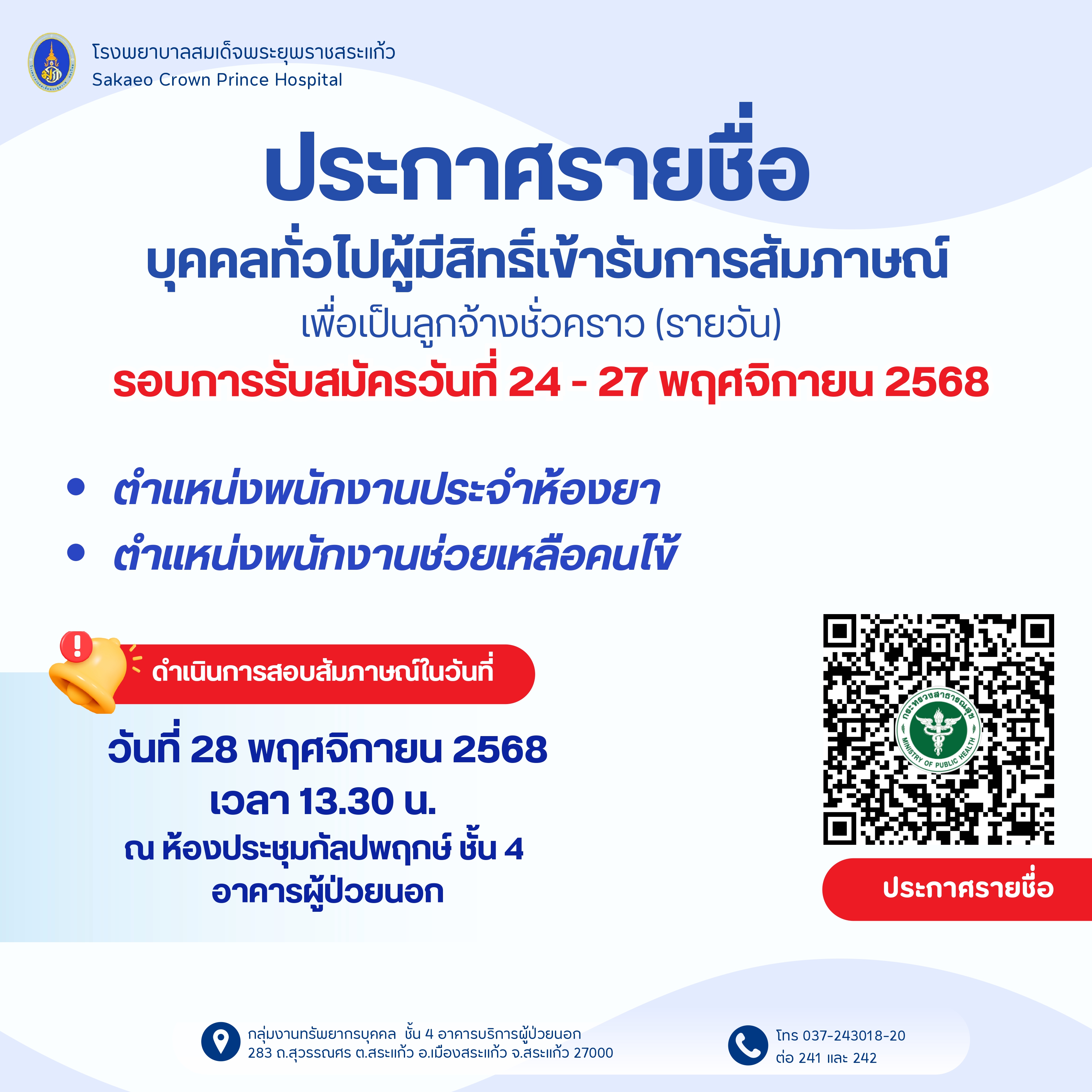 1. ตำแห่นงพนักงานประจำห้องยา