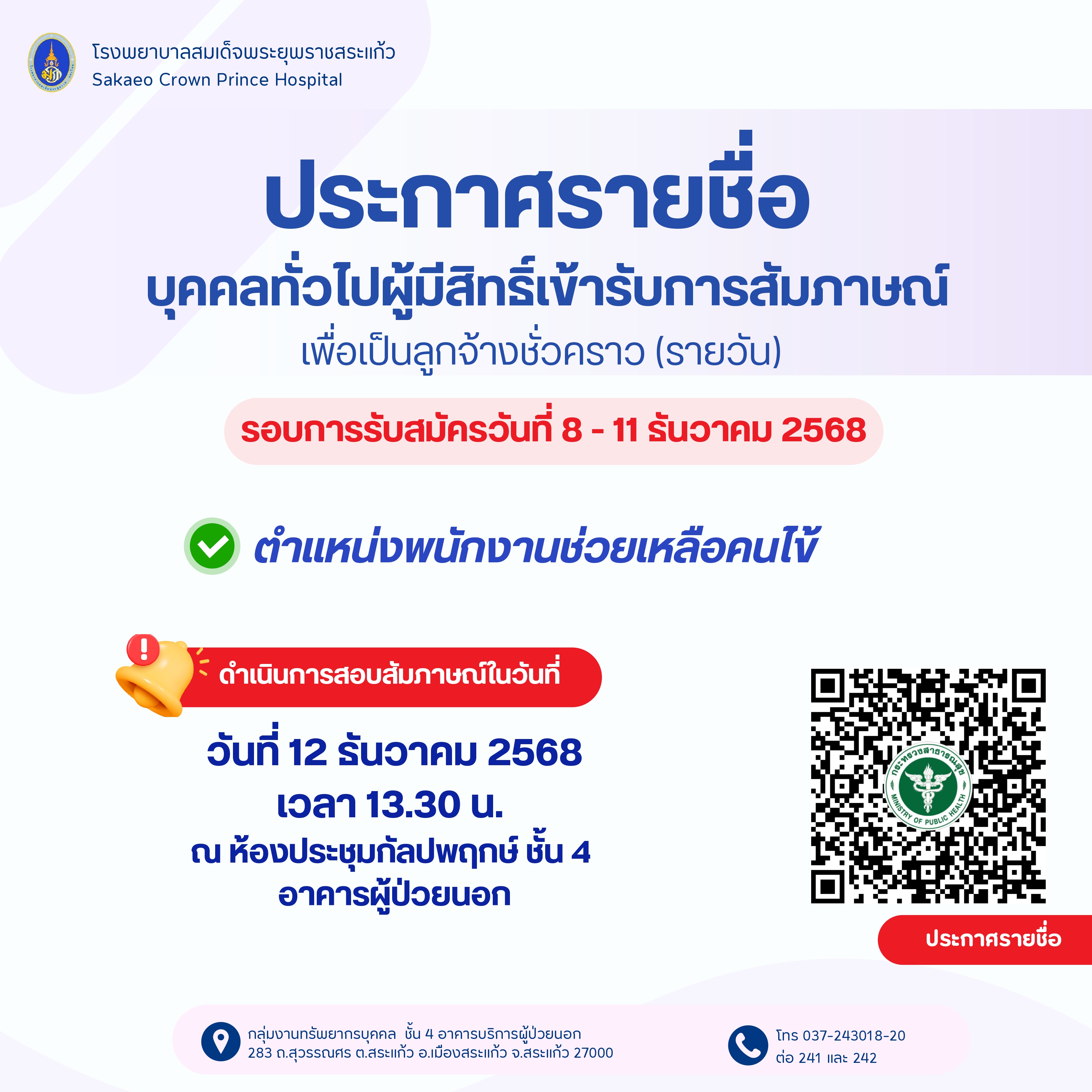 2. ตำแหน่งพนักงานช่วยเหลือคนไข้ (งานเวชกรรมสังคม)