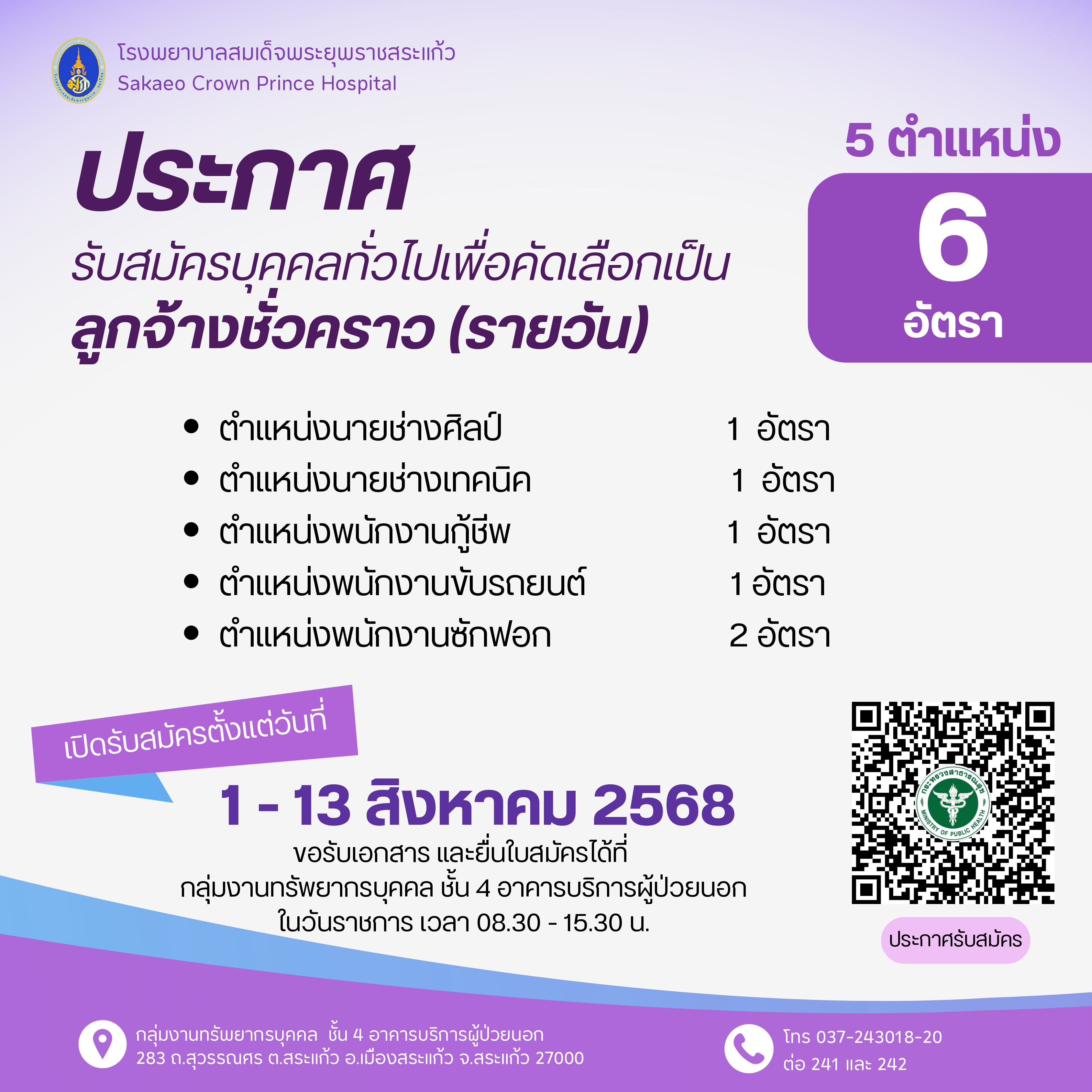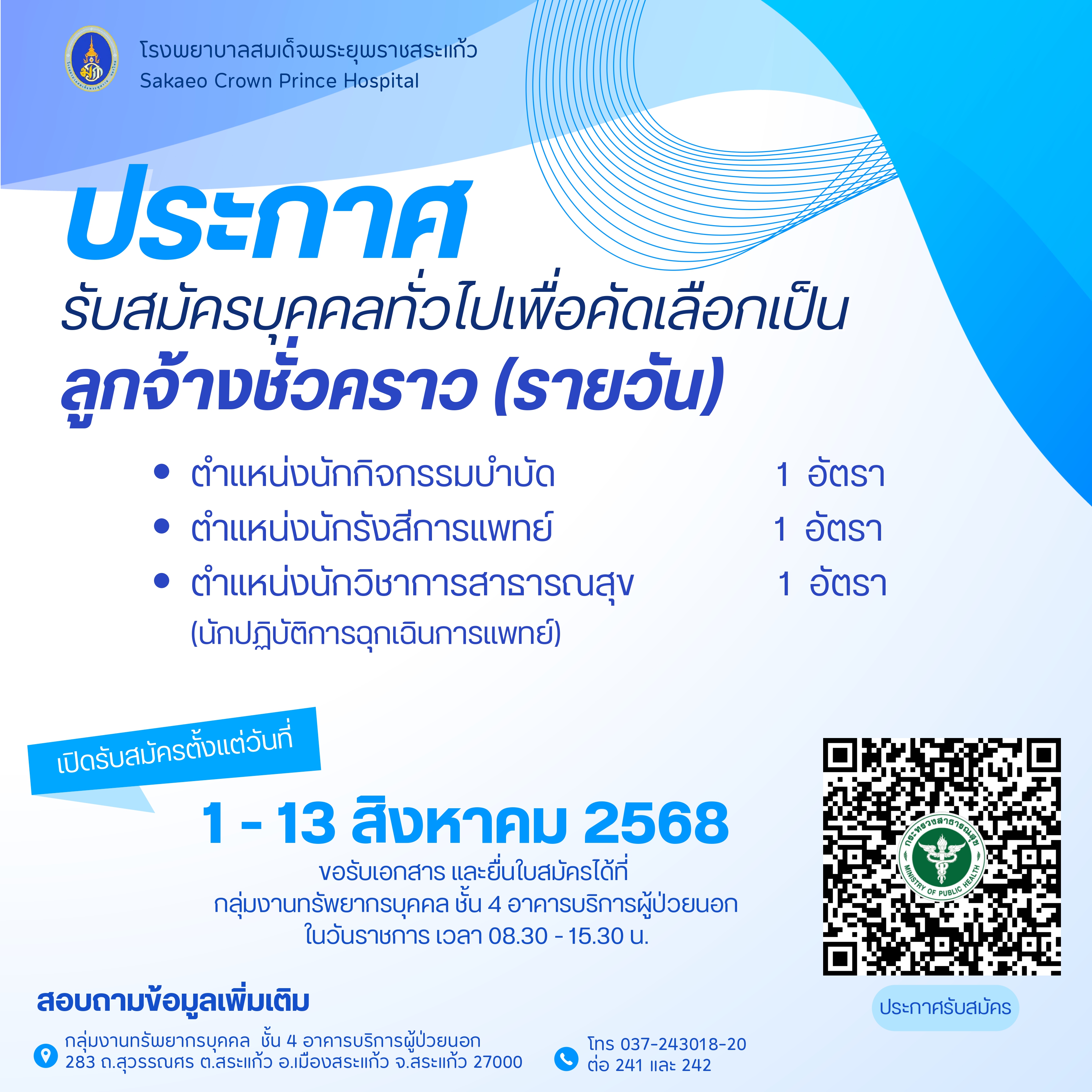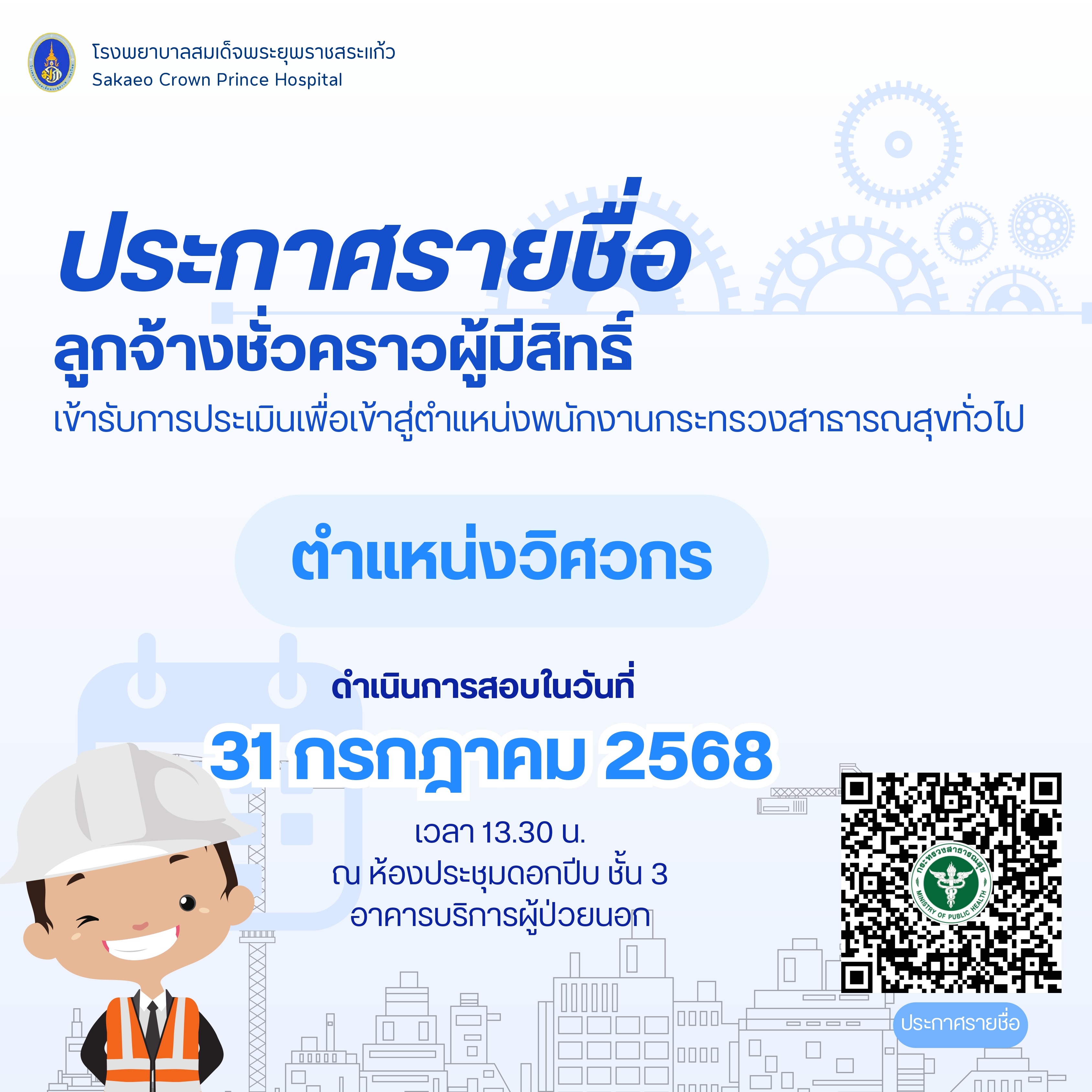 ประกาศรายชื่อลูกจ้างชั่วคราวเพื่อเข้าสู่ตำแหน่งพนักงานกระทรวงสารณสุขทั่วไป