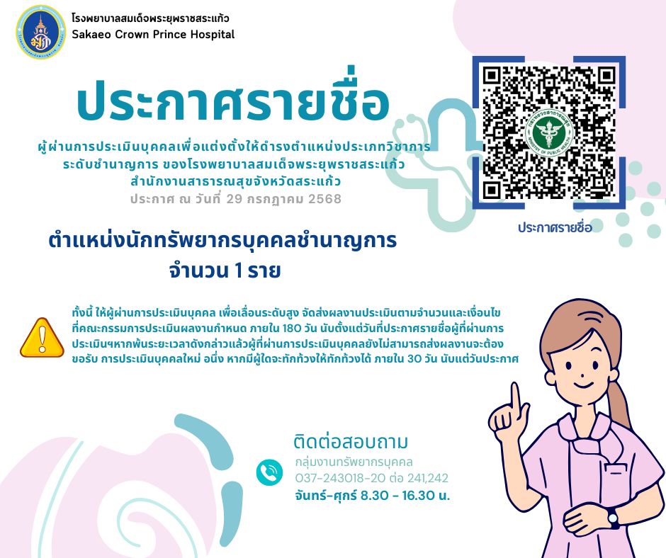 กมลทิพย์ ธรรมวรางกูร ประกาศเลื่อนตำแหน่ง 31 July 2025 Hits: 914 ประกาศรายชื่อผู้ผ่านการประเมินบุคคลเพื่อแต่งตั้งให้ดำรงตำแหน่งประเภทวิชาการ ระดับชำนาญการ Print Email 1. นางสาวพรรณนิภา สลิดชัย Attachments: C02.1.pdf[ ]4378 kB Prev Next