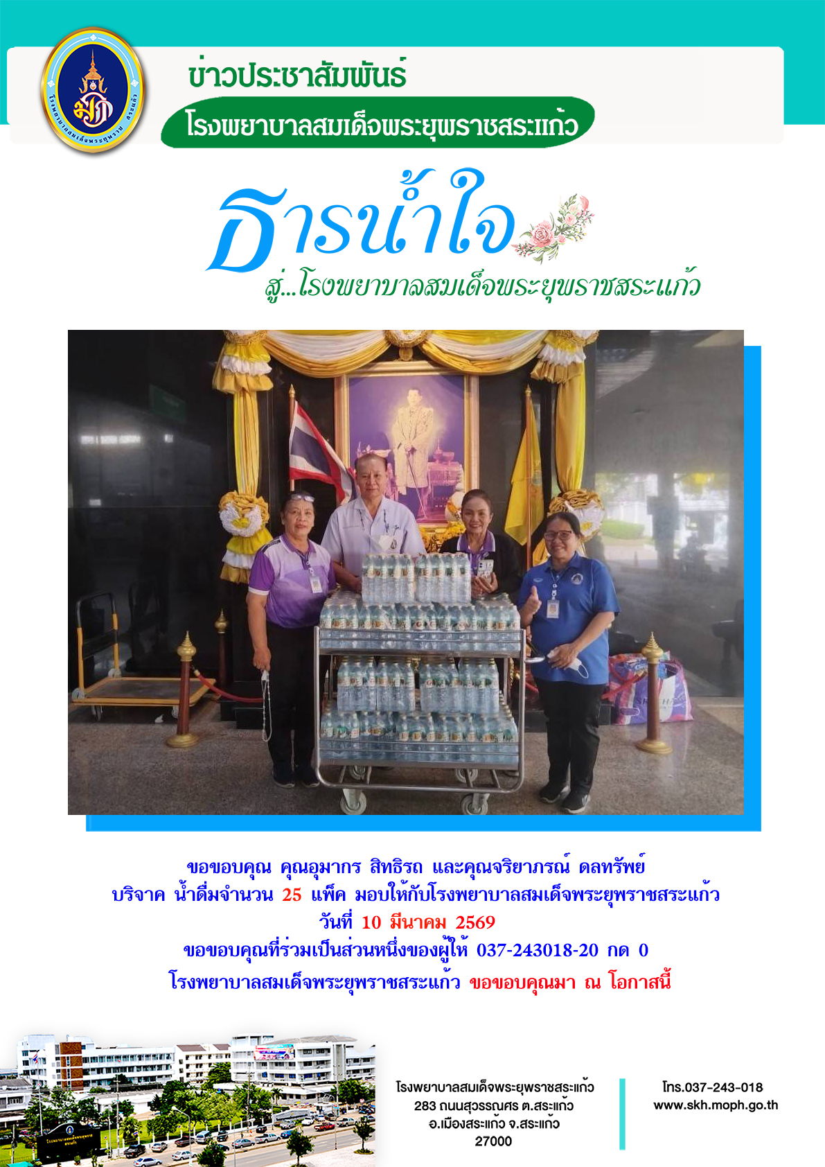 สุภาพร ภูจิตทอง บริจาค 11 March 2026 Hits: 8 ขอขอบคุณ คุณอุมากรณ์ สิทธิรส และ คุณจริยาภรณ์ ดลทรัพย์ Print Email Prev Next