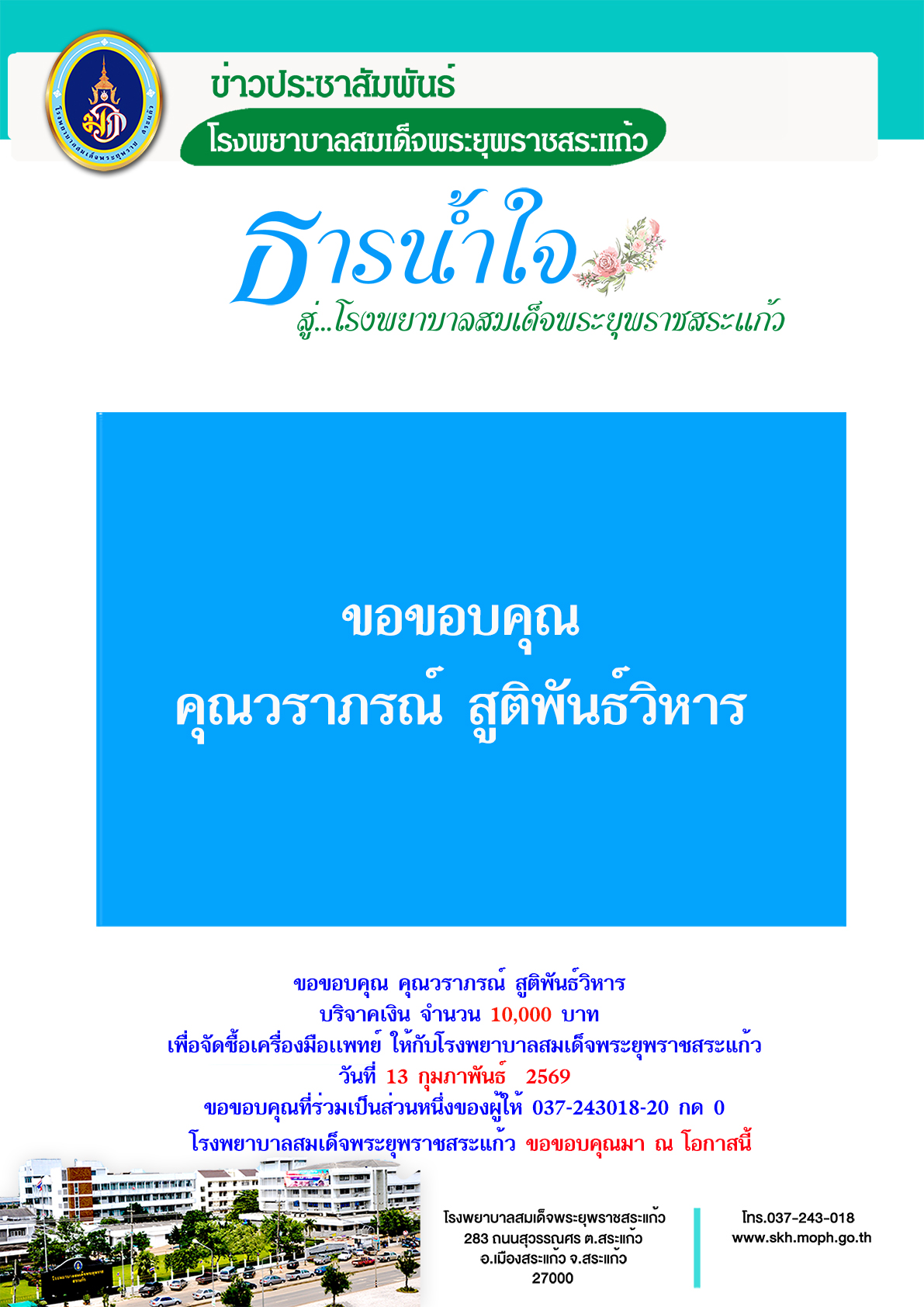 ขอขอบคุณ วราภรณ์ สูติพันธ์วิหาร